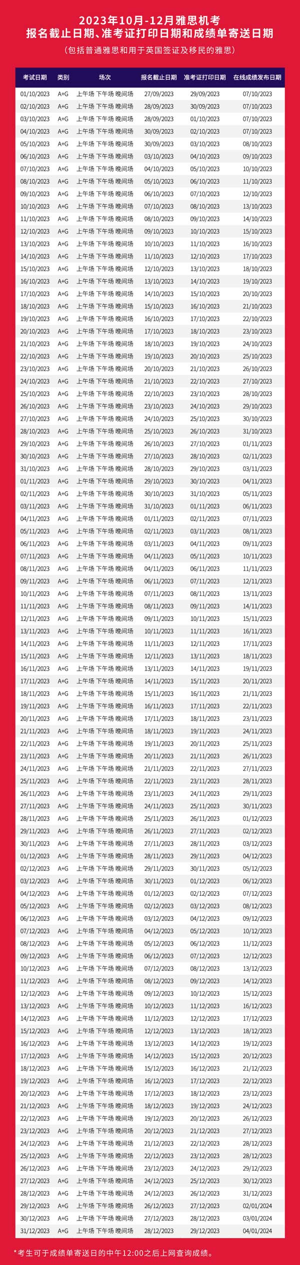2023年10-12月雅思和用于英國簽證及移民的雅思機考考試日期